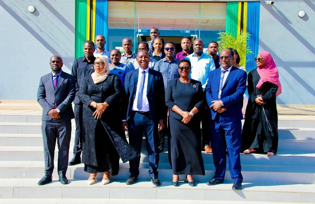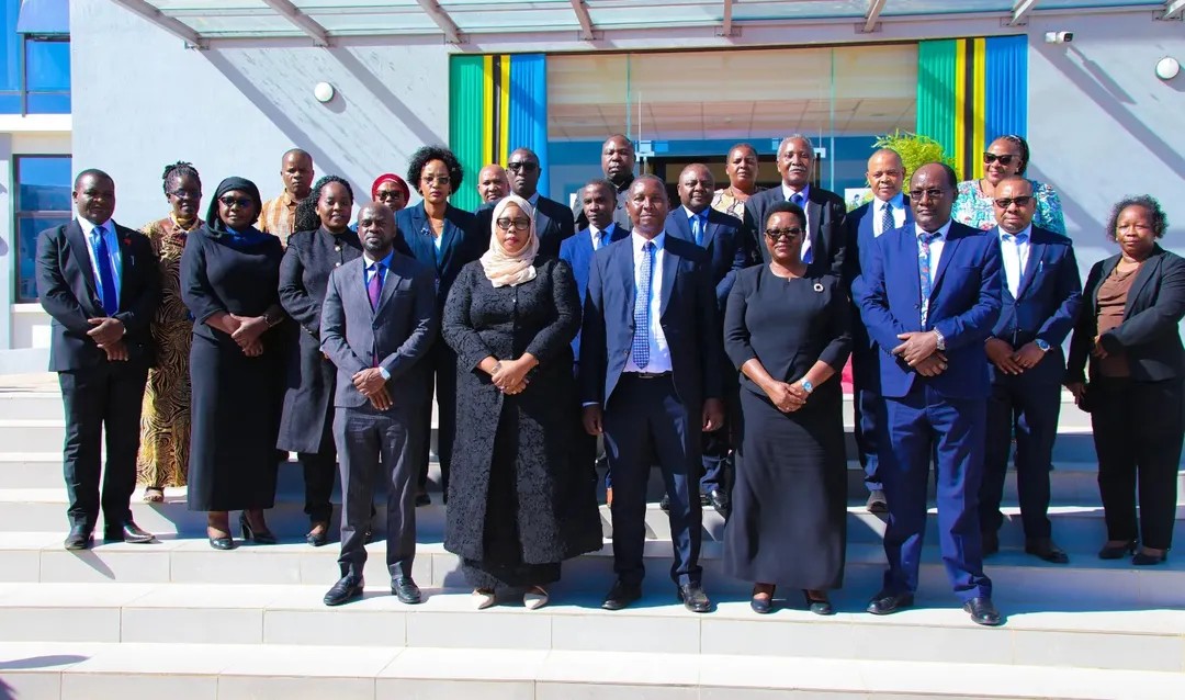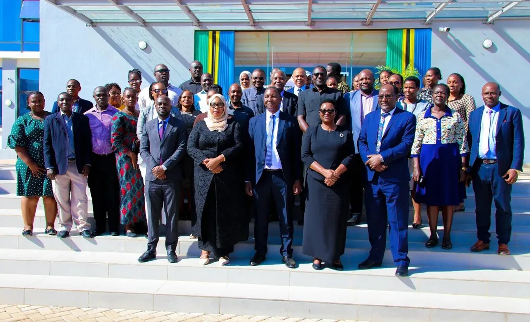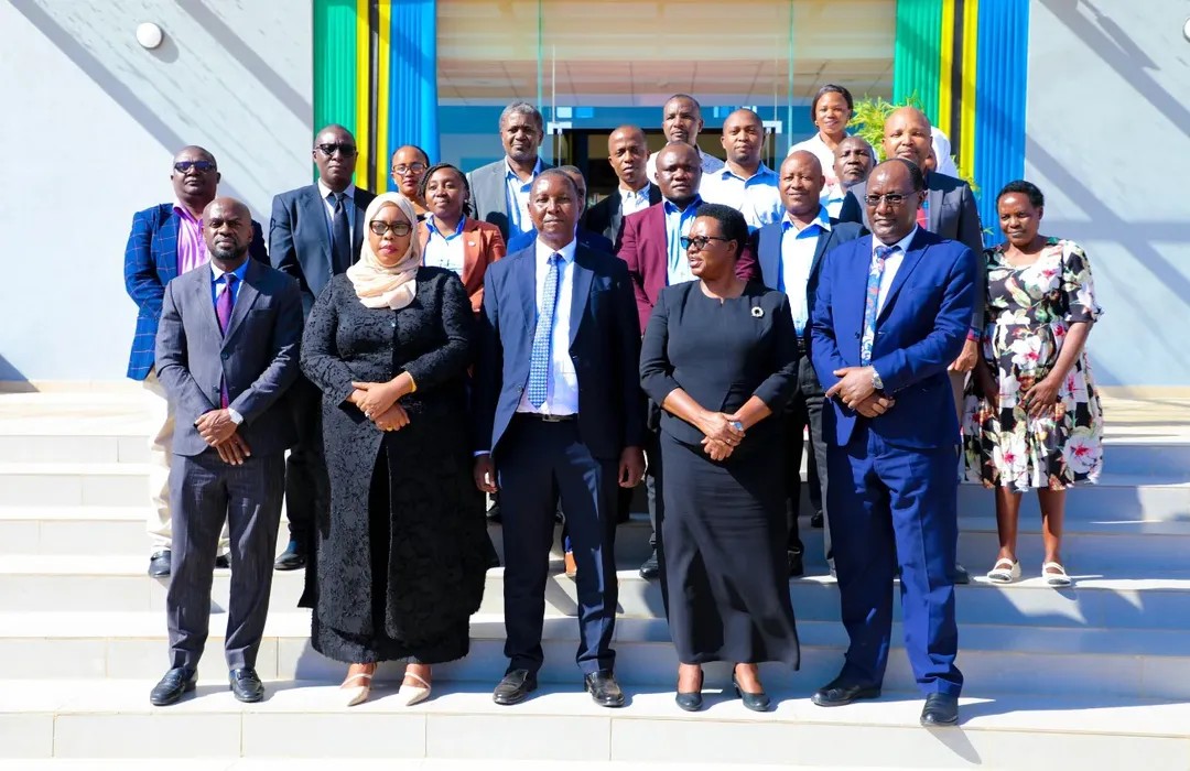 Katika picha ya pamoja Viongozi na Watumishi wa Wizara ya Elimu, Sayansi na Teknolojia Novemba 18, 2025 katika Hafla ya mapokezi ya Waziri Mhe. Prof. Adolf Mkenda na Naibu Waziri Mhe. Wanu Hafidh Ameir.