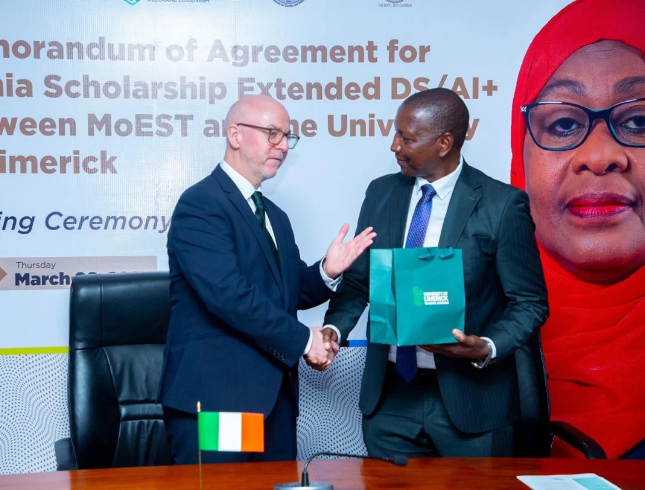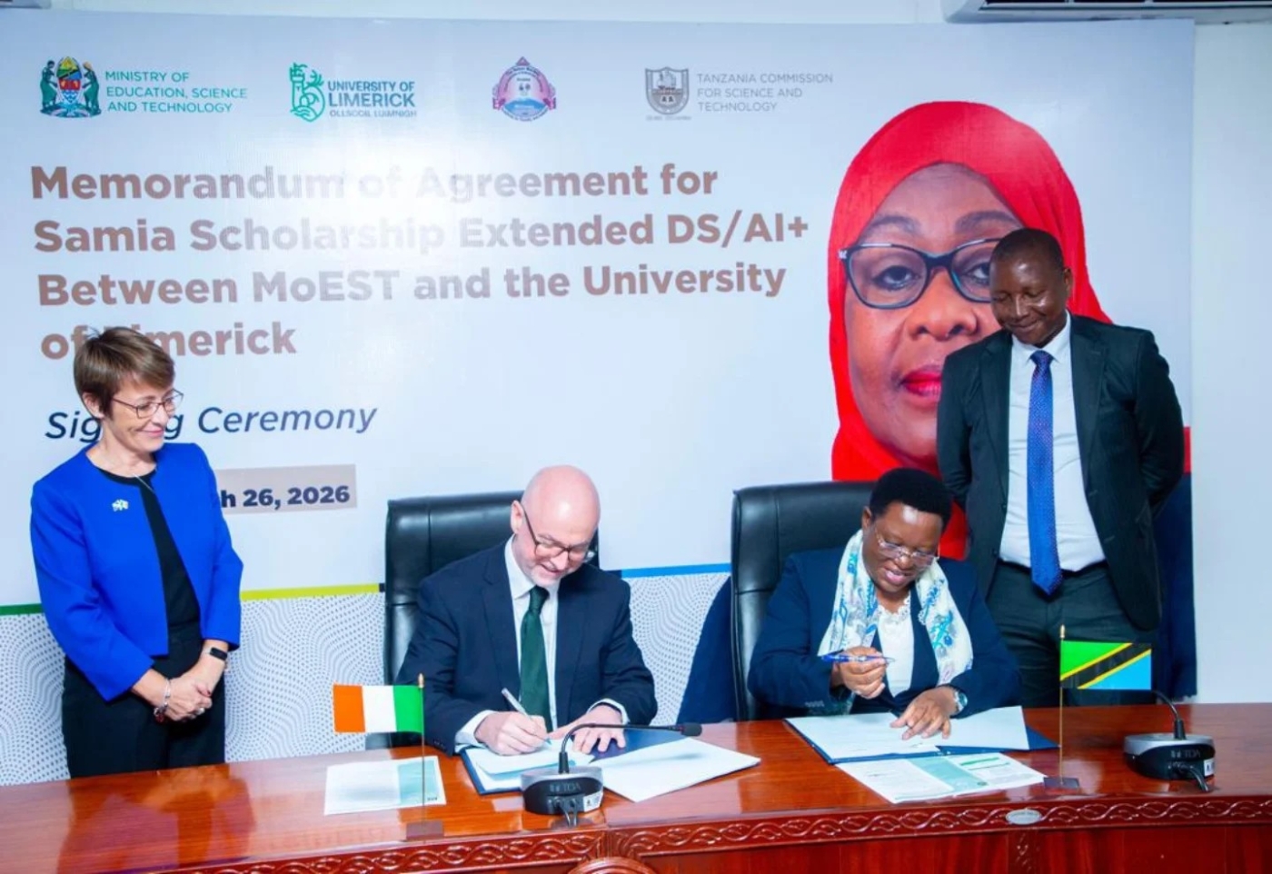 Viijana 34 wanufaika wa Samia Scholarship Extended DS/SI + watanufaika na punguzo la ada ya masomo kwa asilimia 50 katika Chuo Kikuu cha Limerick cha Ireland, kufuatia makubaliano yaliyosainiwa Machi 26, 2026 jijini Dar es Salaam na Serikali ya Tanzania kupitia Wizara ya Elimu, Sayansi na Teknolojia na chuo hicho.