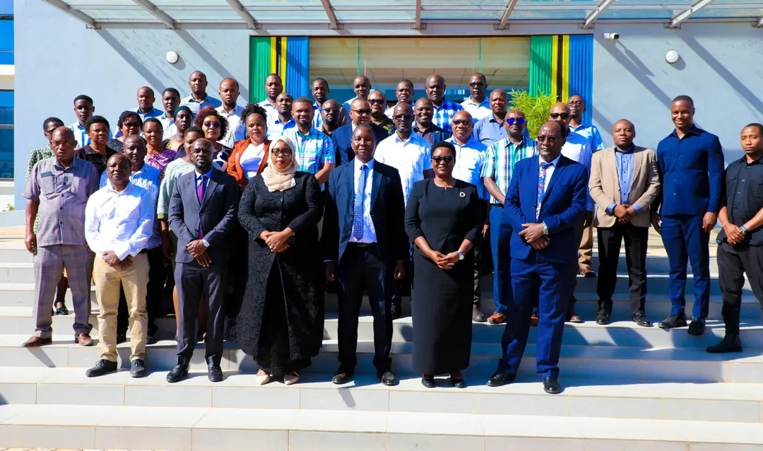 Katika picha ya pamoja Viongozi na Watumishi wa Wizara ya Elimu, Sayansi na Teknolojia Novemba 18, 2025 katika Hafla ya mapokezi ya Waziri Mhe. Prof. Adolf Mkenda na Naibu Waziri Mhe. Wanu Hafidh Ameir.