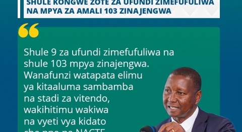 SHULE KONGWE ZOTE ZA UFUNDI ZIMEFUFULIWA NA MPYA ZA AMALI 103 ZINAJENGWA